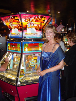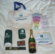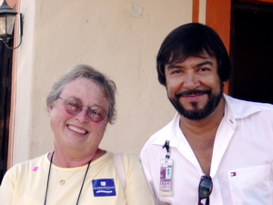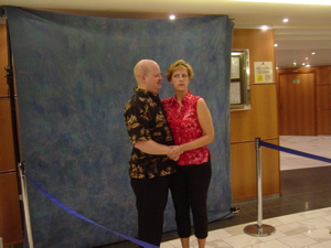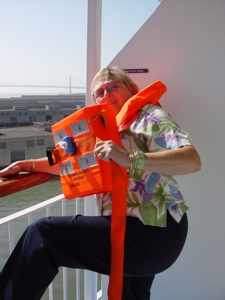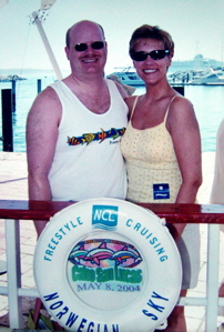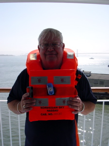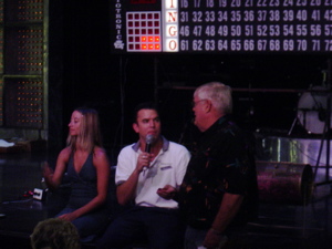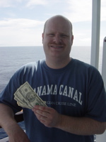 While there were no "Doris Day" parking spaces to be had during the Panama Canal trip. Joe did manage a way to exercise his luck. Here he is talking to the assistant cruise director after winning a FREE CRUISE from a raffle drawing. |