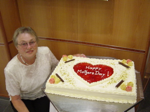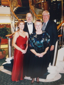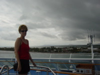 We took Ellie to the Panama Canal for Mother's Day. She calls it a wonderful experience to be cherished for a long time. We call it sucking up. We are standing in the Observation Lounge on the very front of the ship. We are dressed up for Mother's Day. |