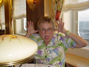 Pick your favorite caption: 1) So Joe and Ellie seemed to have possibly settled on a Hawaii cruise next spring. This is how Ellie broke the news to us. or... 2) When asked if she had any comments for the friends and family that wer left behind, Ellie had this response. |