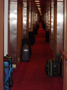 When we returned to the room on the last night, many of the guests had already put out their luggage for the return trip. |