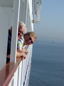 This last photo of the cruise is Joe and Ellie hanging out on their balcony. This was the morning of debarkation when we all were waiting for our group to be let off the ship. |
