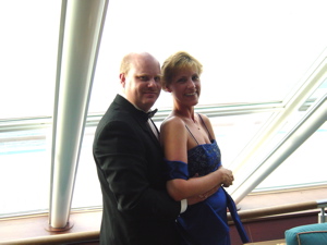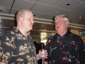 "So this guy walks into a bar..." This is Joel and Joe before dinner on the last night of the cruise. Joel was telling some bad joke or something. |